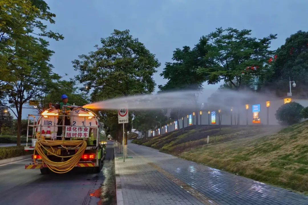 自今年4月下旬以來,綿陽城區降雨偏少、氣溫持續升高,為鞏固綠化景觀成果,給林木“降溫解渴”,新投市政公司科學組織,多措并舉,全面打響“抗旱護綠保衛戰”,確保綠化苗木安全度“夏”。